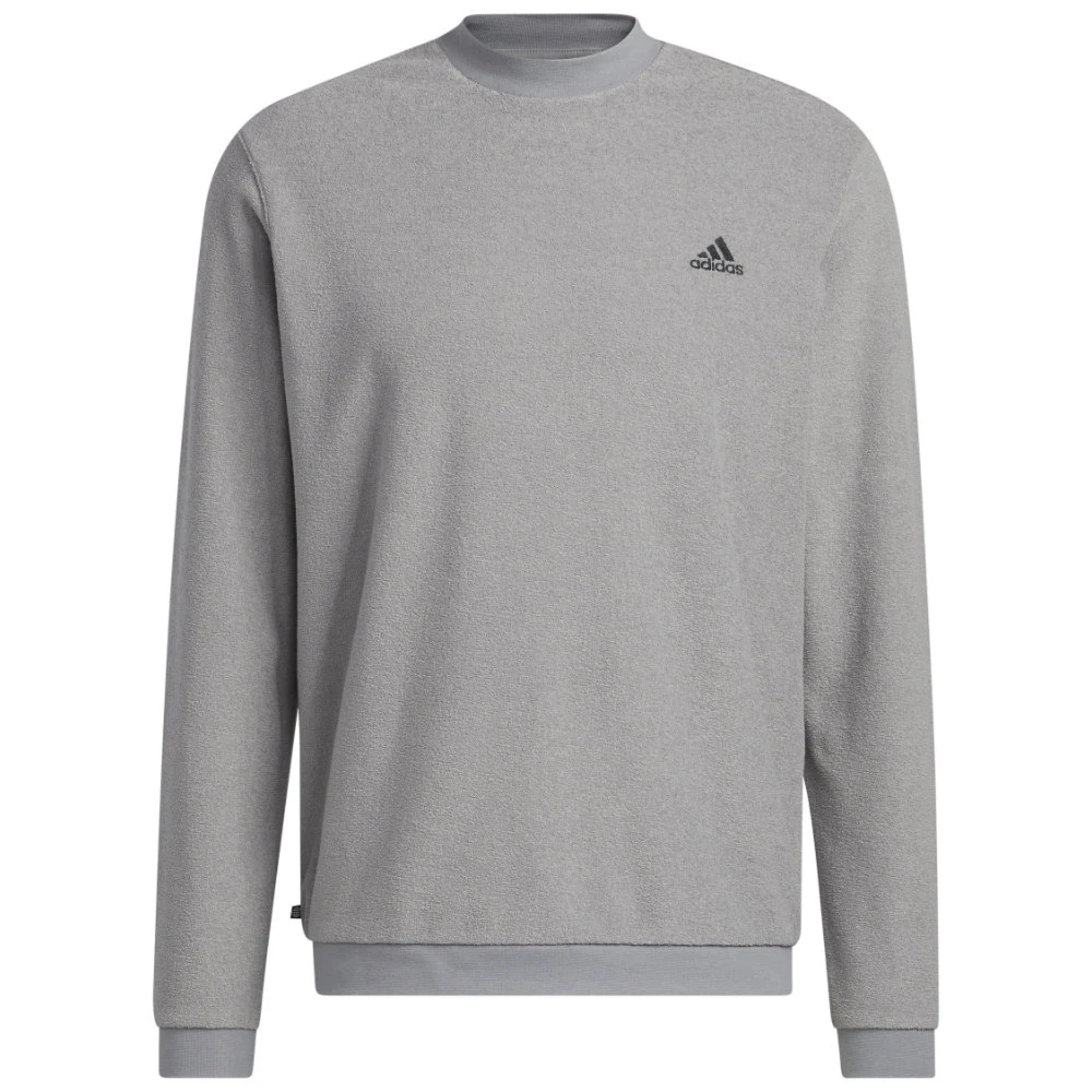 Keep warm on and off the golf course. This adidas crewneck sweatshirt has a cosy feel to keep you comfortable through chilly rounds. The cuffed sleeves ensure a stay-put fit so you can swing through without distractions. Wear it over a tee or polo shirt when the temperature drops. Made with a series of recycled materials, and at least 60% recycled content, this product represents just one of our solutions to help end plastic waste.