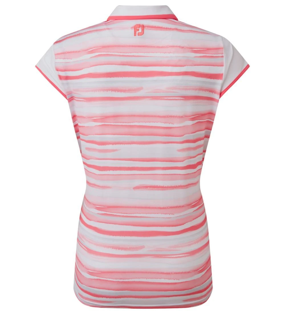 FJ ProDry Lightweight Stretch Lisle fabric. Colour block styling with watercolour body, solid sleeves and collar. Cap sleeve construction with co-ordinated sleeve and collar tipping. Ornamental FJ zipper. Colour-coordinate FJ logo on rear yoke. Moisture wicking technology draws moisture away from the body. Easy care fabric to minimise wrinkling. SPF 30 UV protection