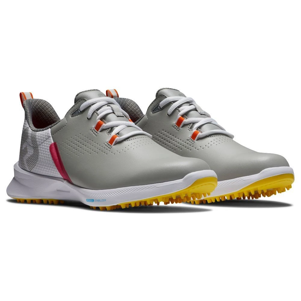 Full rounded toe character, fuller fit across forefoot, narrower fit in heel. Midfoot support through the swing comes from a patented Stability Bridge. Lateral support is also aided by the EVA midsole. Enhanced grip is provided by a Pro|SL inspired outsole. Easy to clean synthetic uppers