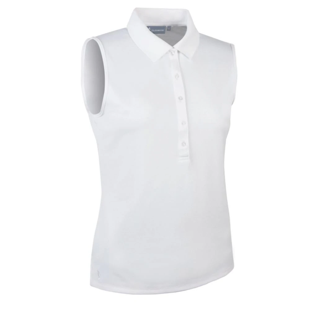 A classic cut and look for the fairways, in a myriad of different colourways, the shaped sleeveless polo, Jenna is a plain golf shirt that will easily complement both bold prints and solid colour outfit choices. The softly textured pique knit, combined with active smart fibre performance fabric, enhances its breathability and heat transferral, keeping you cooler and drawing moisture away from the skin to wick away for dry comfort. +40 UV protection helps further look after your skin health. The shaped fit is flattering, with a V-cut hem, anti-curl rib collar and five-button deep placket.