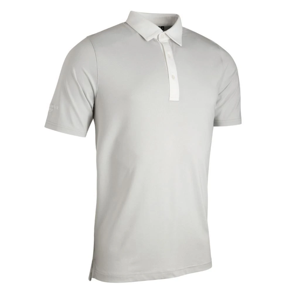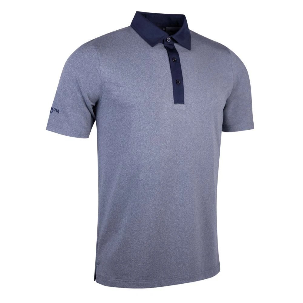 Handsome in a soft two-tone marl finish, complemented by a solid colour contrast at the collar, placket and buttons, Glenmuir’s men’s performance golf polo shirt, Campbell, promises the same level of looks and comfort game after game. They use a fabric designed to keep its appearance – and including an anti-curl tailored collar – so you can put all your effort into your handicap and not your laundry. This golfing shirt has full 4-way stretch, is breathable with active thermoregulation to help you keep your cool in all situations, keeps you dry with its moisture wicking capabilities and shields against damaging sunrays to +40 UV protection.