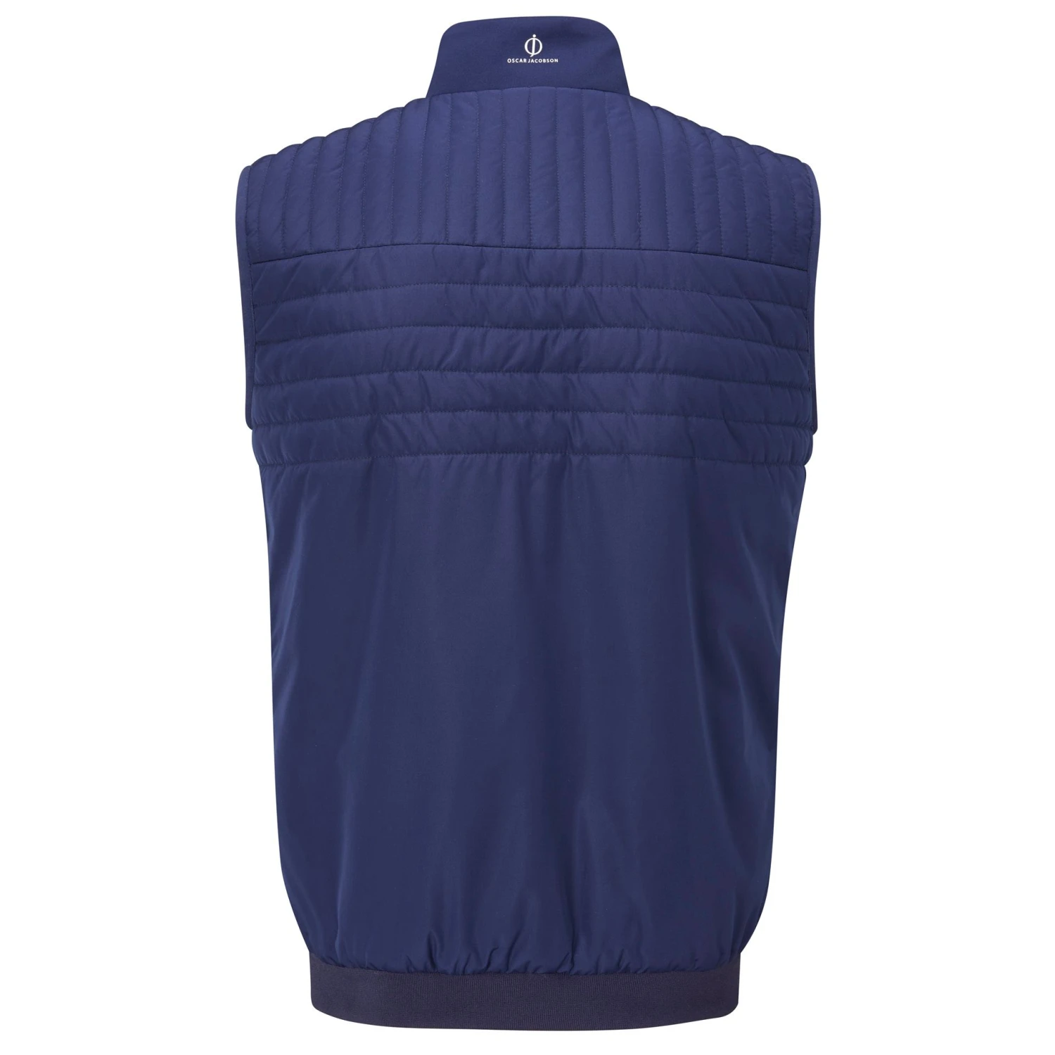 The Hodgson gilet from Oscar Jacobson is a very desirable cross-over garment that features excellent thermal properties. The gilet also has water-repellent fabric and padding for optimum comfort and features horizontal & vertical quilting to the chest for a great contemporary look. Look stylish on and off the course whilst maintaining excellent warmth and thermal regulation.