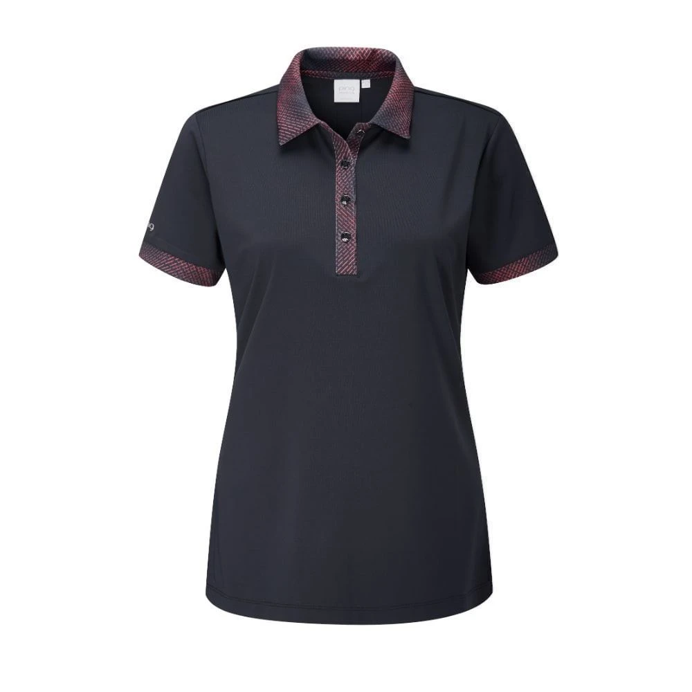 The Ping Ladies Etta Golf Polo Shirt features a contrasting print on the collar, cuffs, placket, and an eye-catching stripe down the centre back. SensorCool® fabric draws moisture away from the skin so it can evaporate leaving you dry and comfortable on warmer days.