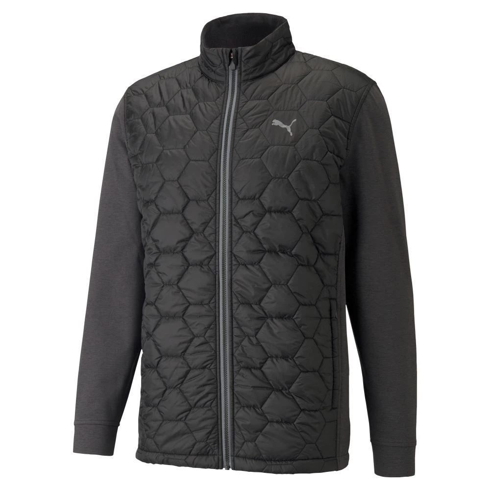 The Puma Cloudspun Primaloft Thermal Jacket is a premium outerwear garment with a stylish look and hybrid design. Made from 100% polyester, the Cloudspun Primaloft Jacket is designed to offer maximum comfort and freedom of movement. Constructed from CLOUDSPUN, the fabric is soft, lightweight, and has a 4-way stretch for ultimate comfort. Featuring full Primaloft insulation through the body of the garment, the lightweight fill retains high levels of body heat keeping you warm even in the coldest weather. Finished with quilted panels, zipped side pockets, and the Puma logo on the left chest for added style. Puma golf outerwear offers a sporty and stylish look with technical fabrics to offer the best performance for your game.