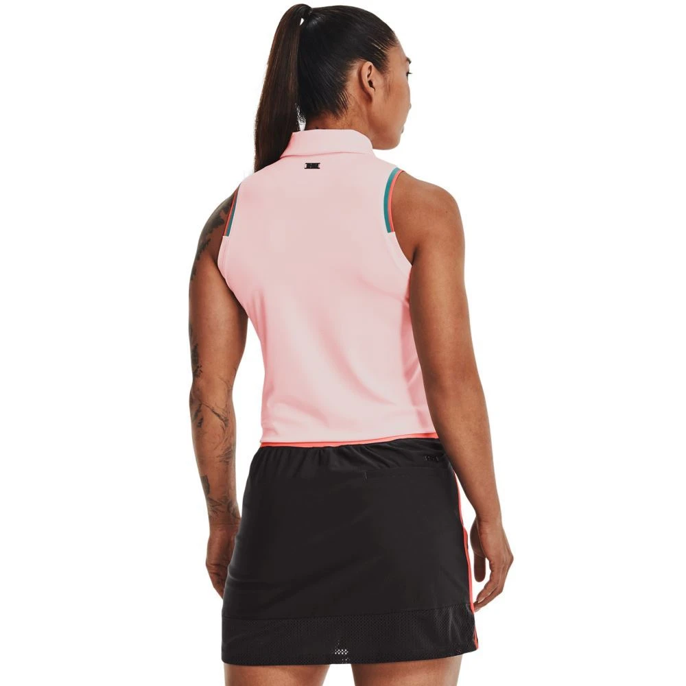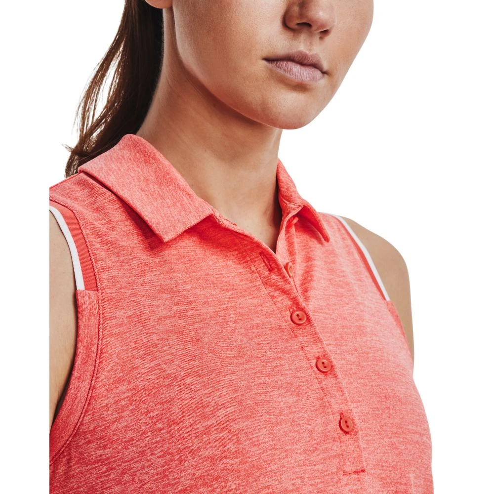 Under Armour Ladies Zinger Point Sleeveless Golf Polo Shirt. The shaped hem enhances coverage to prevent this polo from riding up during your swing, while the ribbed detailing around the arm holes adds an extra-smart finish. These minute features combine for a fantastic polo shirt.